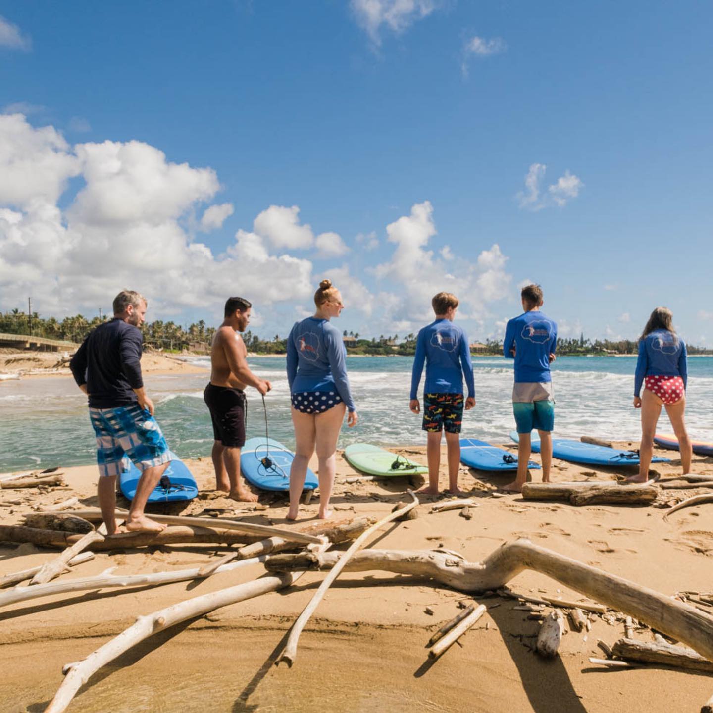 Offering Kauai surf lessons for begginner, intermediate, and advanced surfing. Join a group lesson or book a private lesson with 1-on-1 instruction. All ages and all abilities are welcome. With experience in teaching keiki (children), elders, behavioral health and special needs, we invite everyone to join for a true Hawaiian surfing experience. Come surf the safe and fun sandbars on the East Side of Kauai. Our friendly and knowledgeable staff will make if an unforgettable experience.